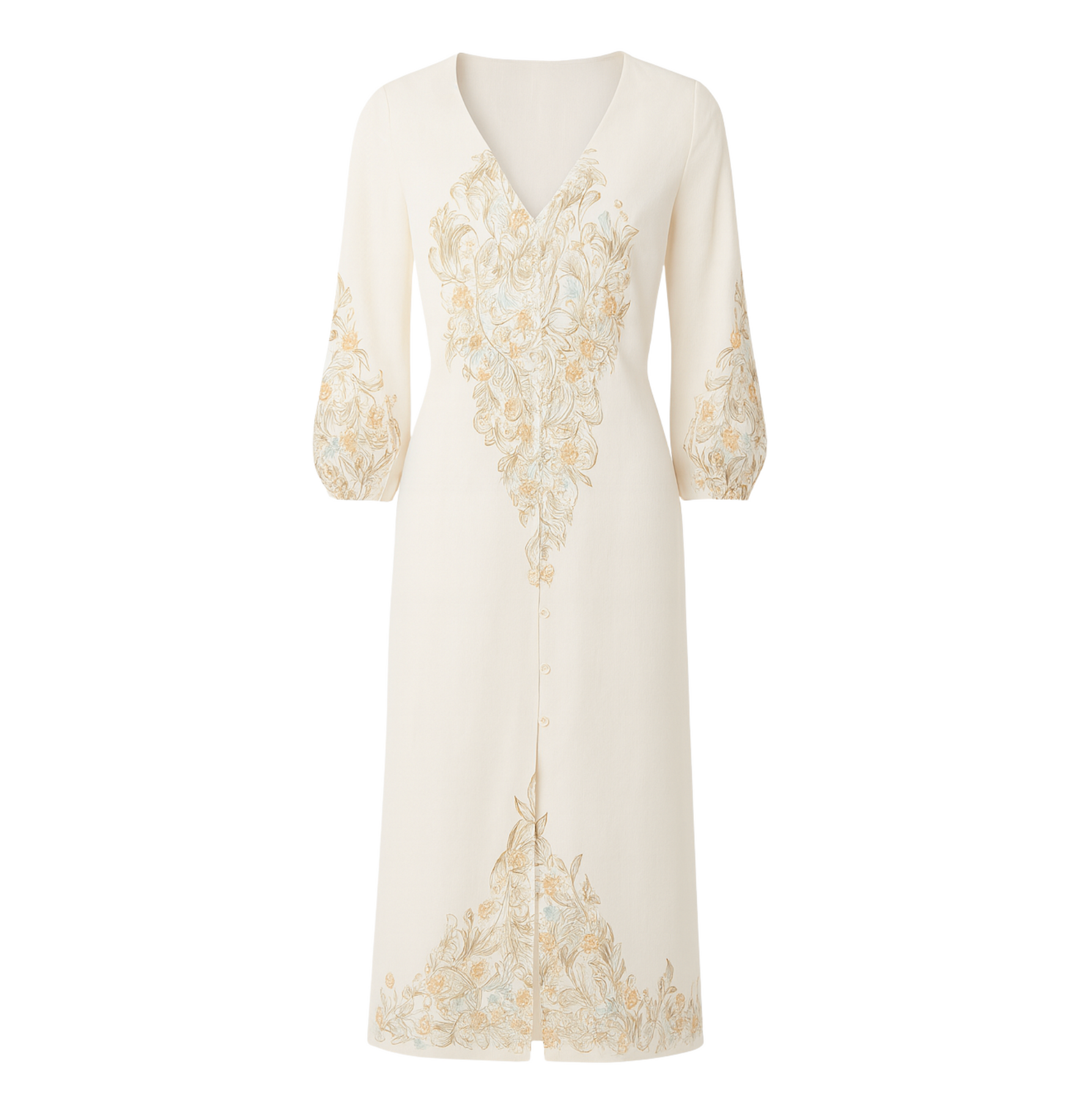The Seema Midi Dress is an effortlessly feminine silhouette crafted from breathable, 100% GOTS-certified organic cotton. Ethically handmade, this versatile piece features a relaxed, easy shape with 3/4 sleeves and a removable waist sash that allows you to tailor the fit to your mood. Thoughtful placement of the print adds an elegant touch, making the Seema perfect for both day and evening. Wear it as a polished dress for a night out or style it open over your swimsuit for an elevated resort-ready look.