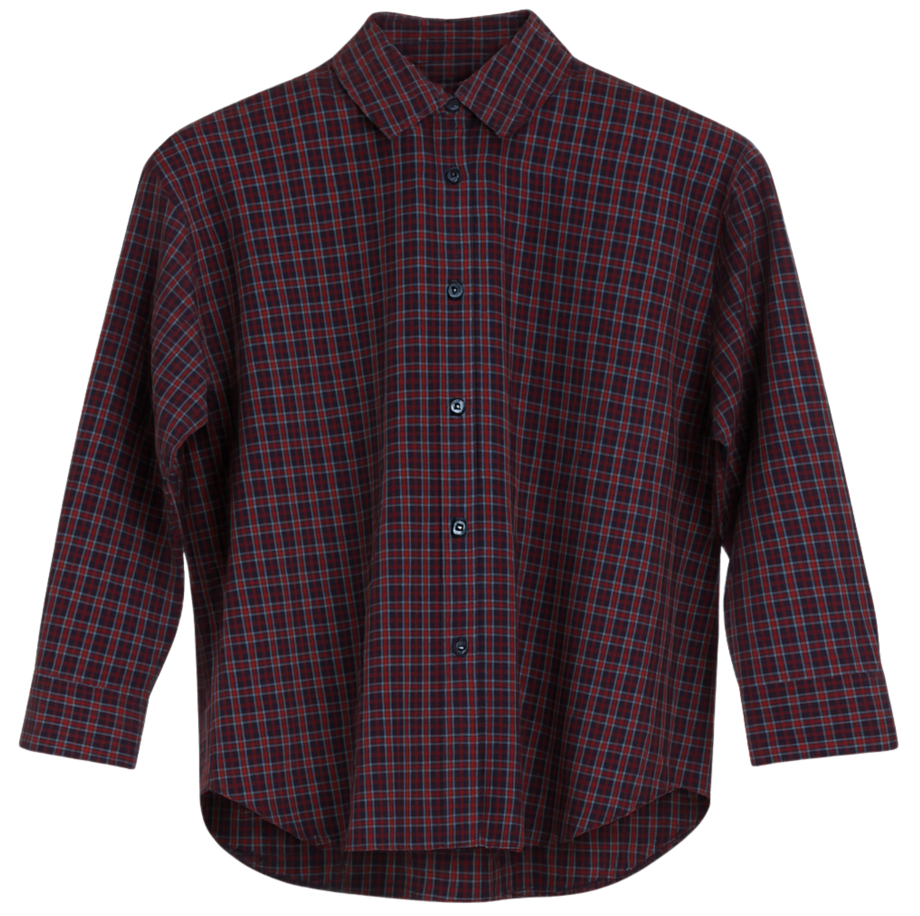 A classic HH silhouette in a beautiful new Japanese tartan--perfect mood for fall but a totally useful wardrobe piece year round. The Swing Shirt has 2 wide double pleats at the back and a bias-cut yoke, giving the shirt a playful twist. The 3/4-length sleeve is perfect for rolling. I personally wear sleeves just to roll them up. The placket is designed to perfectly half-tuck one side just below the last button.
