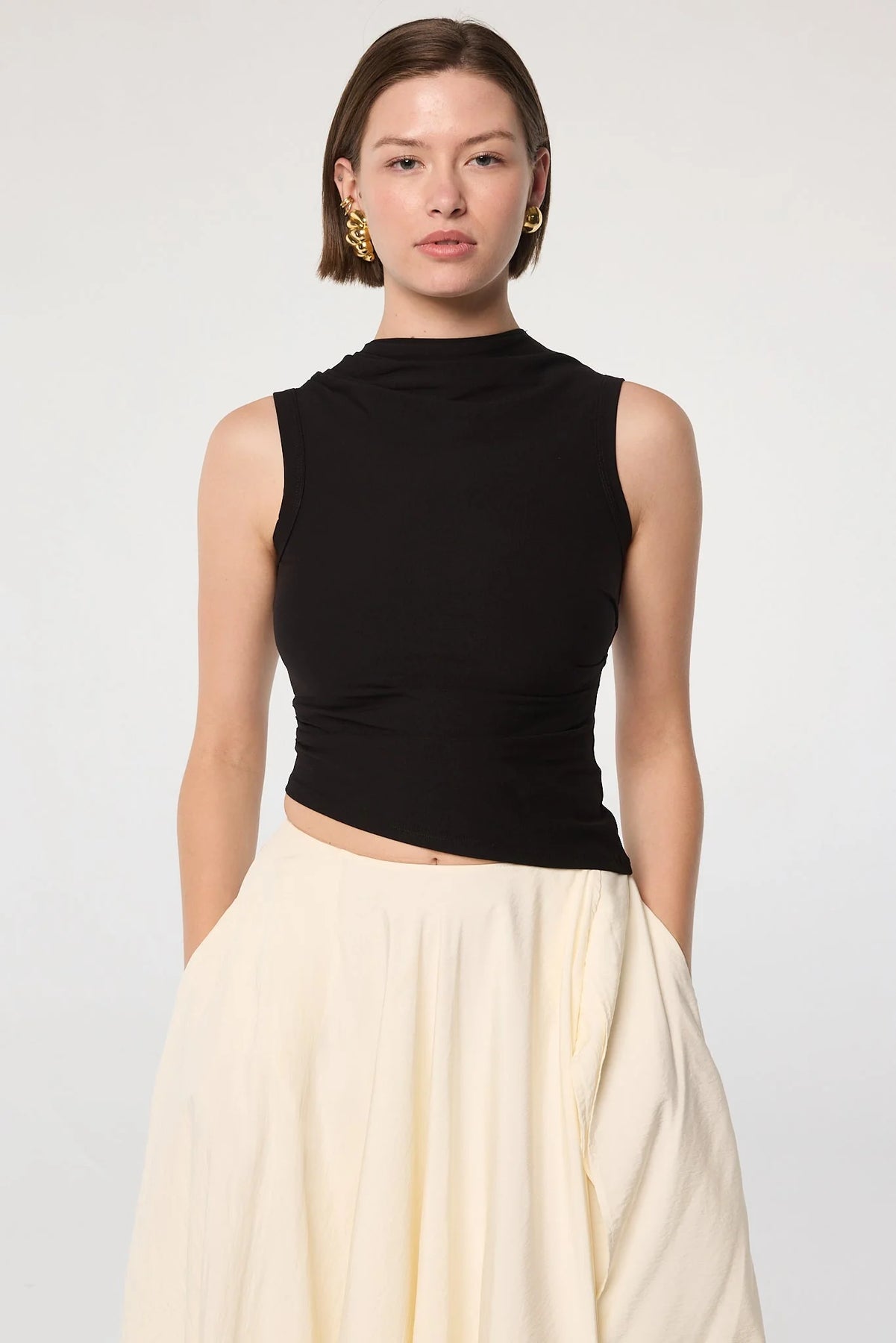 Deemed one of our core essentials, the Selma is an effortlessly draped tank designed to wear with your favorite jeans and slinky slip skirts . Cut from our signature stretch-jersey, this tank features thick binding at the armholes, hand-pleated detailing at the shoulder and waist, and an asymmetrical hem.