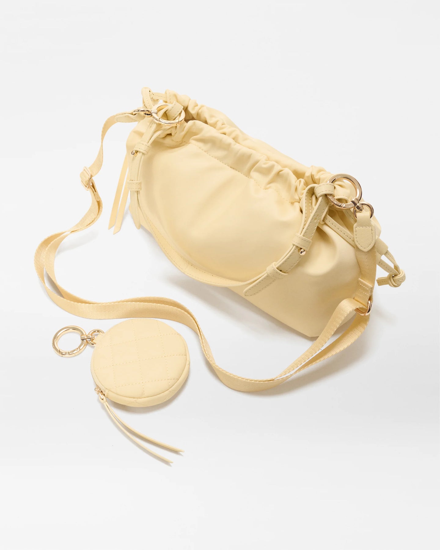 - Detachable, adjustable nylon crossbody strap