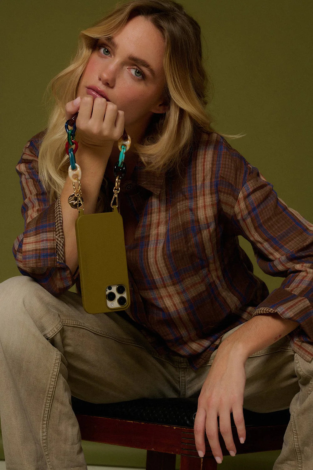The essential accessory! No more searching for your phone at the bottom of your bag or on your desk, it follows you everywhere. Perfect for having your hands free while doing something else, our straps can be worn on the shoulder, in the hand or even hung on your bag for a new handle. Our chains will give a chic touch to your outfits. You can remove the chain easily and at any time, and exchange it according to your desires and outfits. You can adapt your hull with the different chains that we offer. The case is sold separately. You can also attach it to our universal adapter.