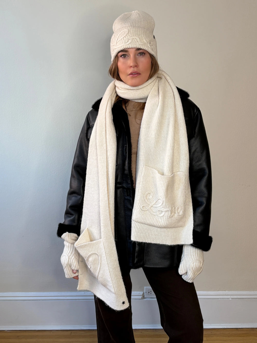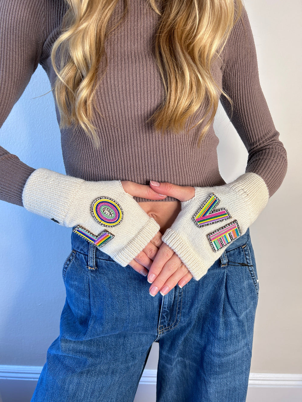 Sailor Love Whipstitch Flip Top Mittens - Heathered Cream/Navy
