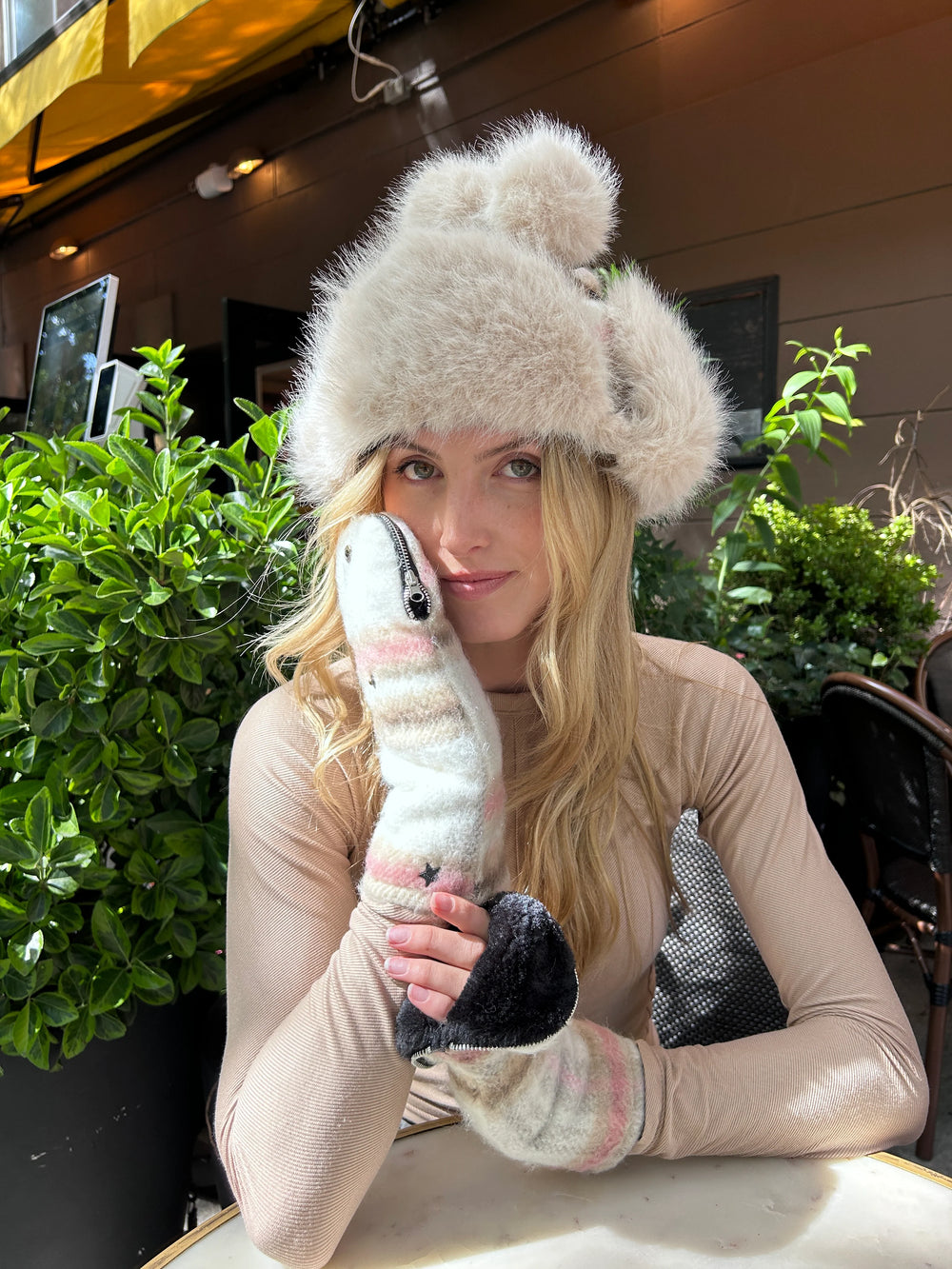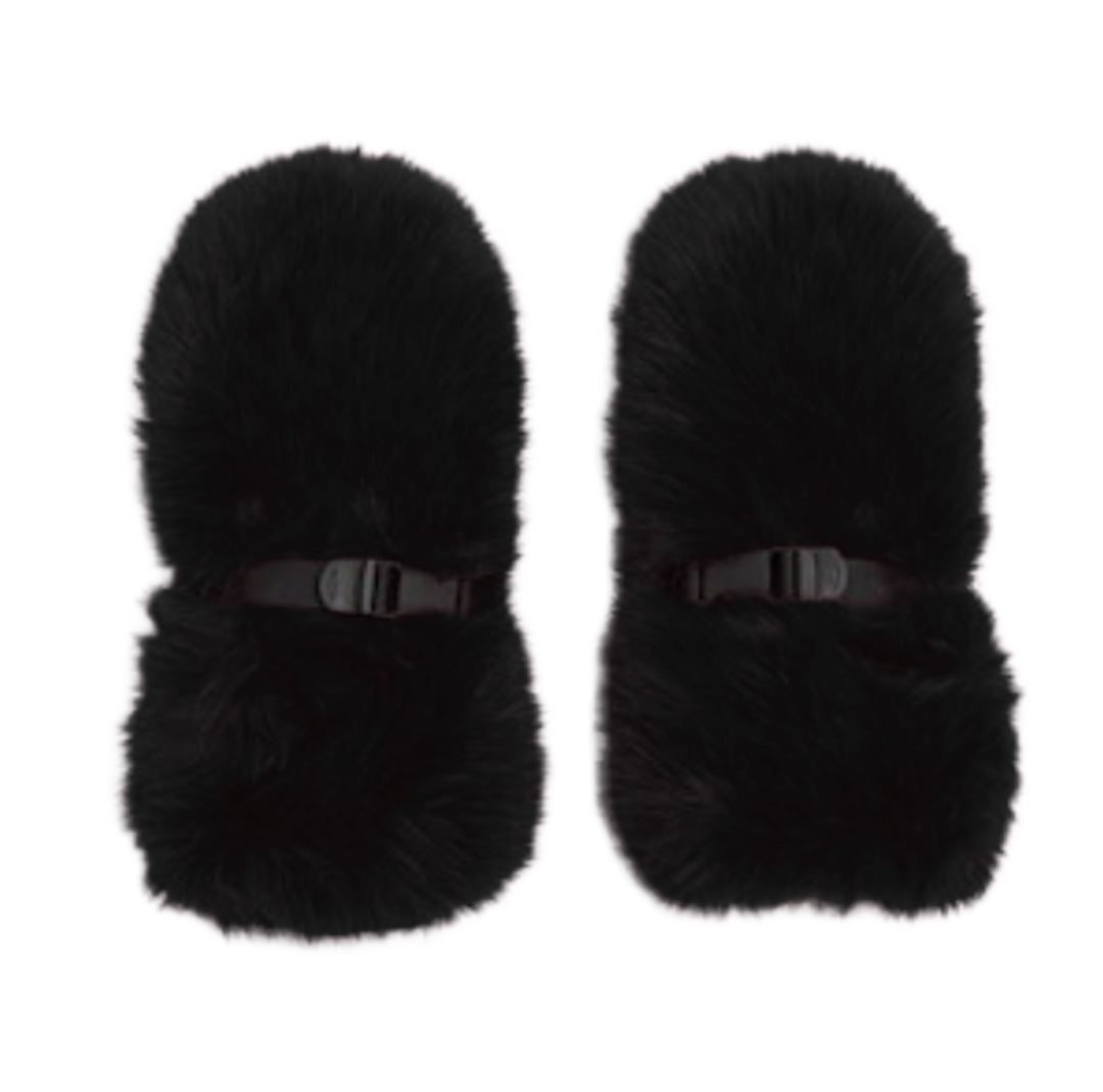 Cozy Cabin Faux Fur Mittens - Oatmeal/Black