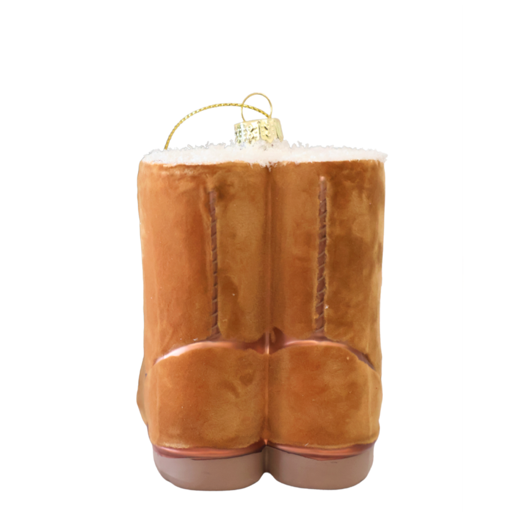 Bring warmth and whimsy to your holiday decor with this adorable cozy boot ornament. Designed to look just like your favorite shearling-lined winter boots, it features a soft caramel color, faux suede texture, and a plush white trim that mimics freshly fallen snow.