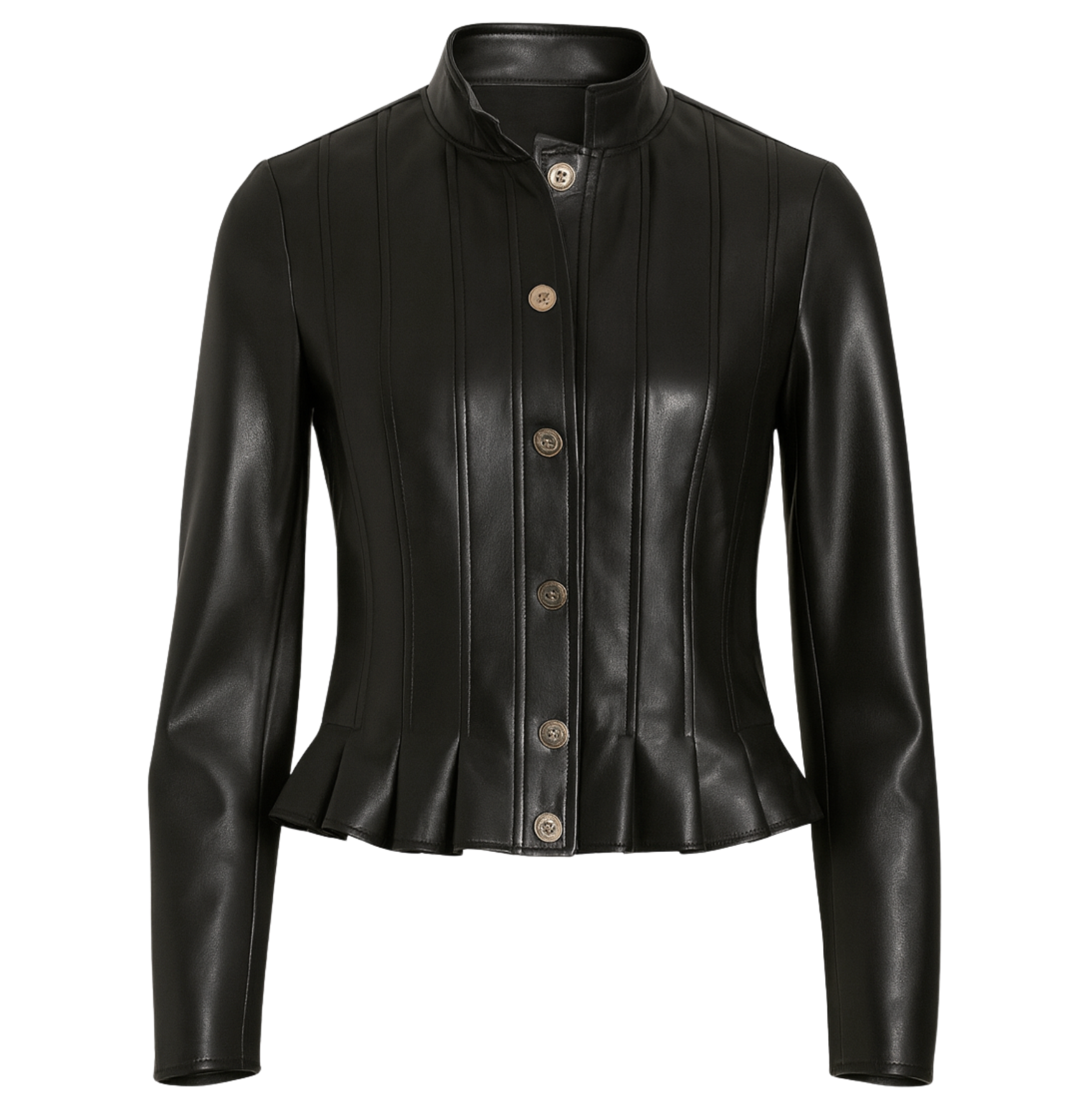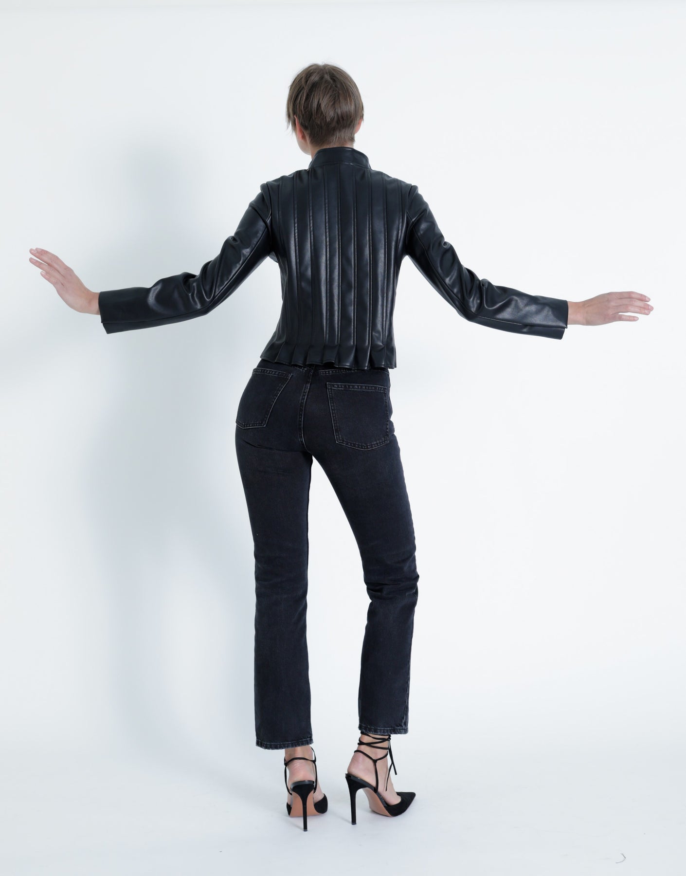 Elevate your wardrobe with this sleek black jacket, designed with a modern, tailored silhouette.