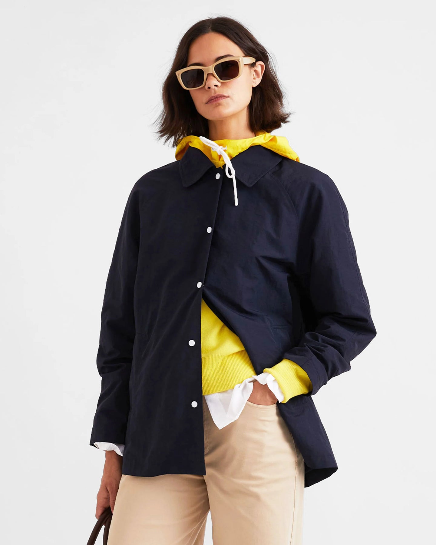 The Talia is a lightweight nylon hood designed for unpredictable days and easy layering. Made to pair back perfectly to the yellow Nylon Watson, it adds just the right amount of coverage without feeling heavy. Functional, slightly unexpected, and very KULE.