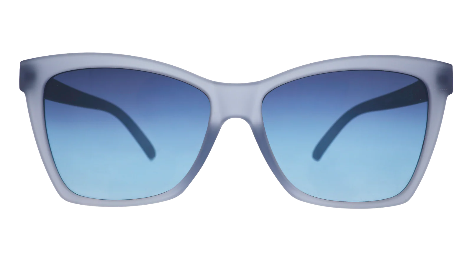 Translucent blue Pop Gs with blue gradient lenses made to leave a lasting impression. No-slip, no-bounce, and impossibly cool. Perfect for dramatic exits, emotional entrances, and staring wistfully into the distance. Forgettable? Never.