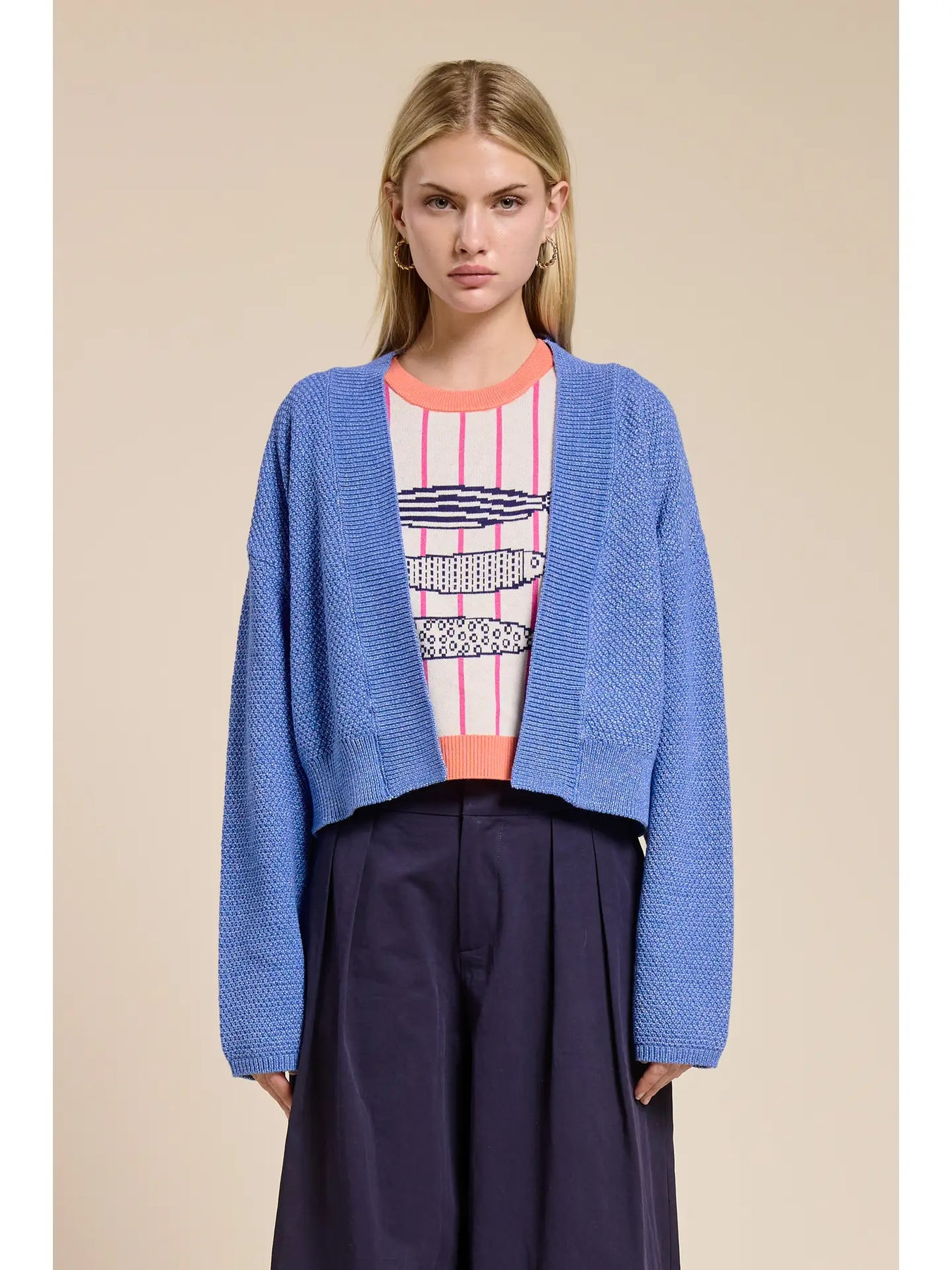 An easy, open-front layer designed with a relaxed, cropped silhouette. This cardigan features softly draped sleeves, a clean ribbed trim, and a textured finish that adds quiet dimension. Effortless and versatile, it’s the kind of piece you’ll reach for season after season—perfect over dresses, tees, or worn as a light finishing layer.