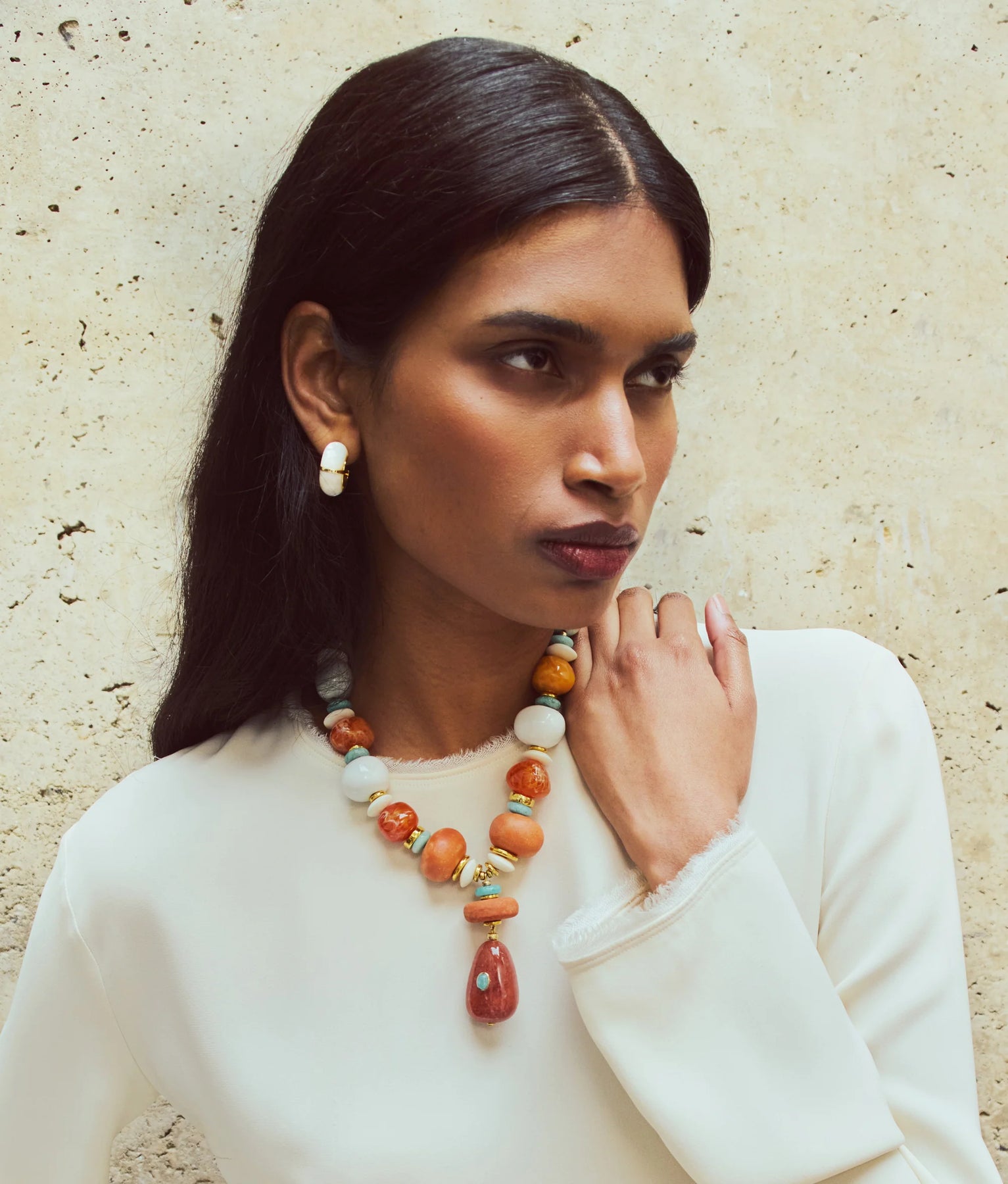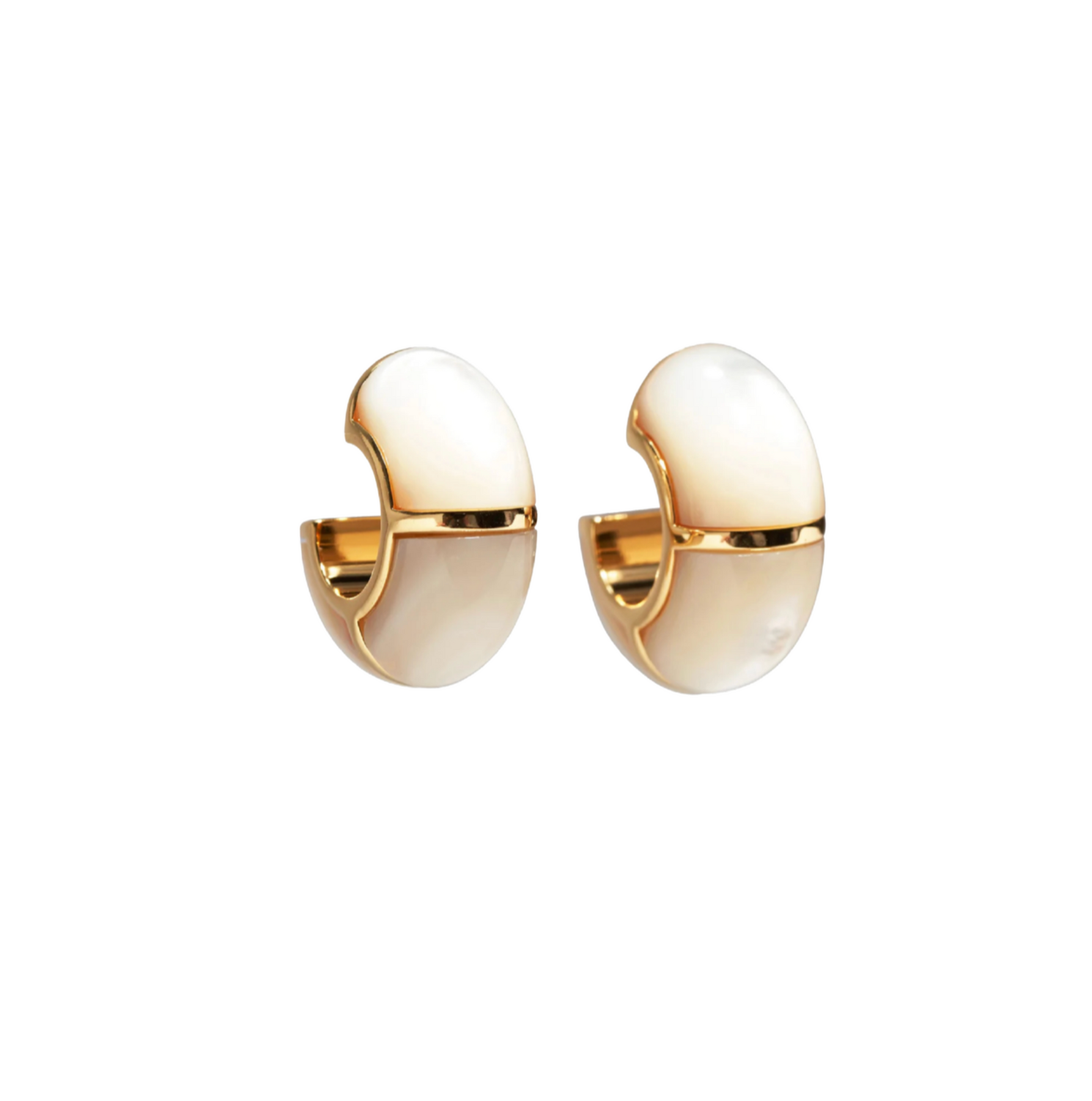 The design team took inspiration from the traditional glazed Zellige tiles handcrafted in Morocco and created these hoops, our freshest new silhouette in gold-plated brass with a luminous mother-of-pearl stone inlay.