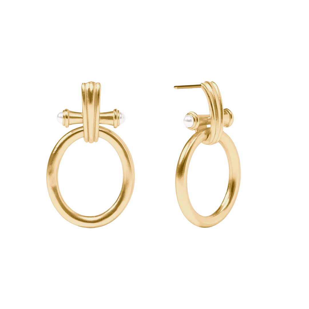 Designed and handcrafted to the standards of fine jewelry. Made of pearl and imported glass, hand set in 24k gold plate over nickel-free brass and sealed to prevent tarnish.