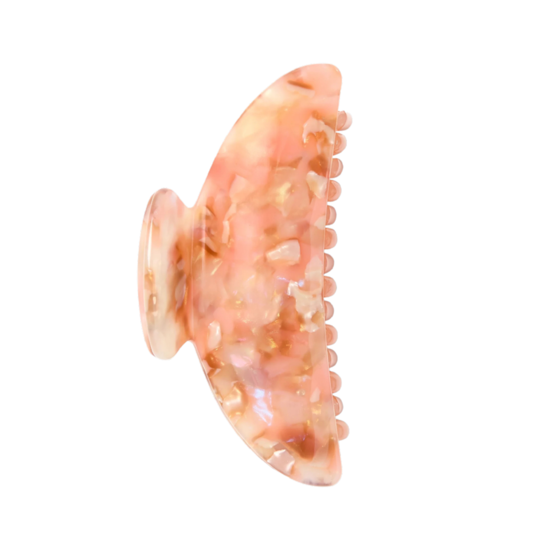 A double-walled hair claw designed to hold medium volumes of hair, handcrafted from Italian acetate with reinforced hardware. Recommended for all hair types and textures.
