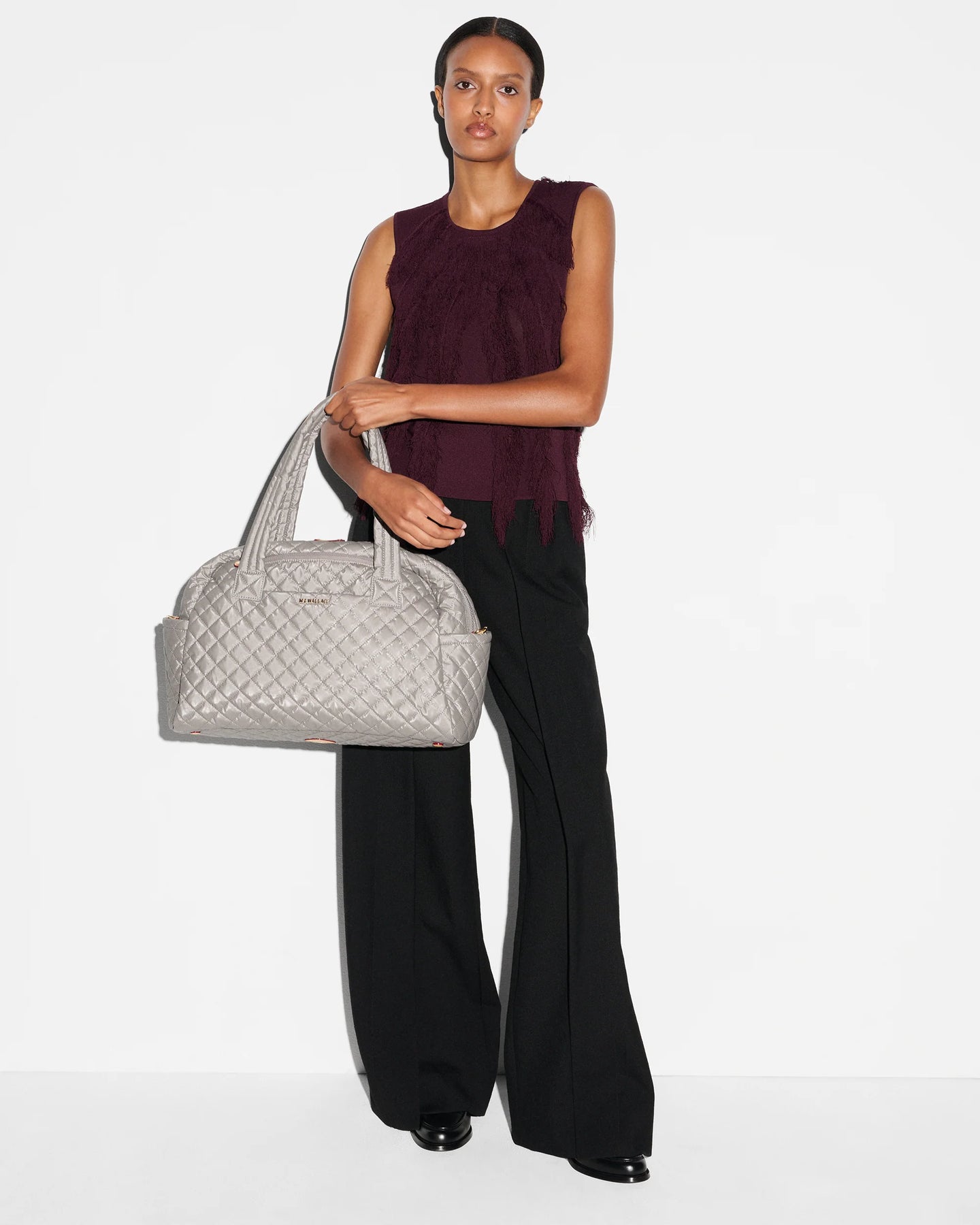 • Detachable, adjustable nylon crossbody strap