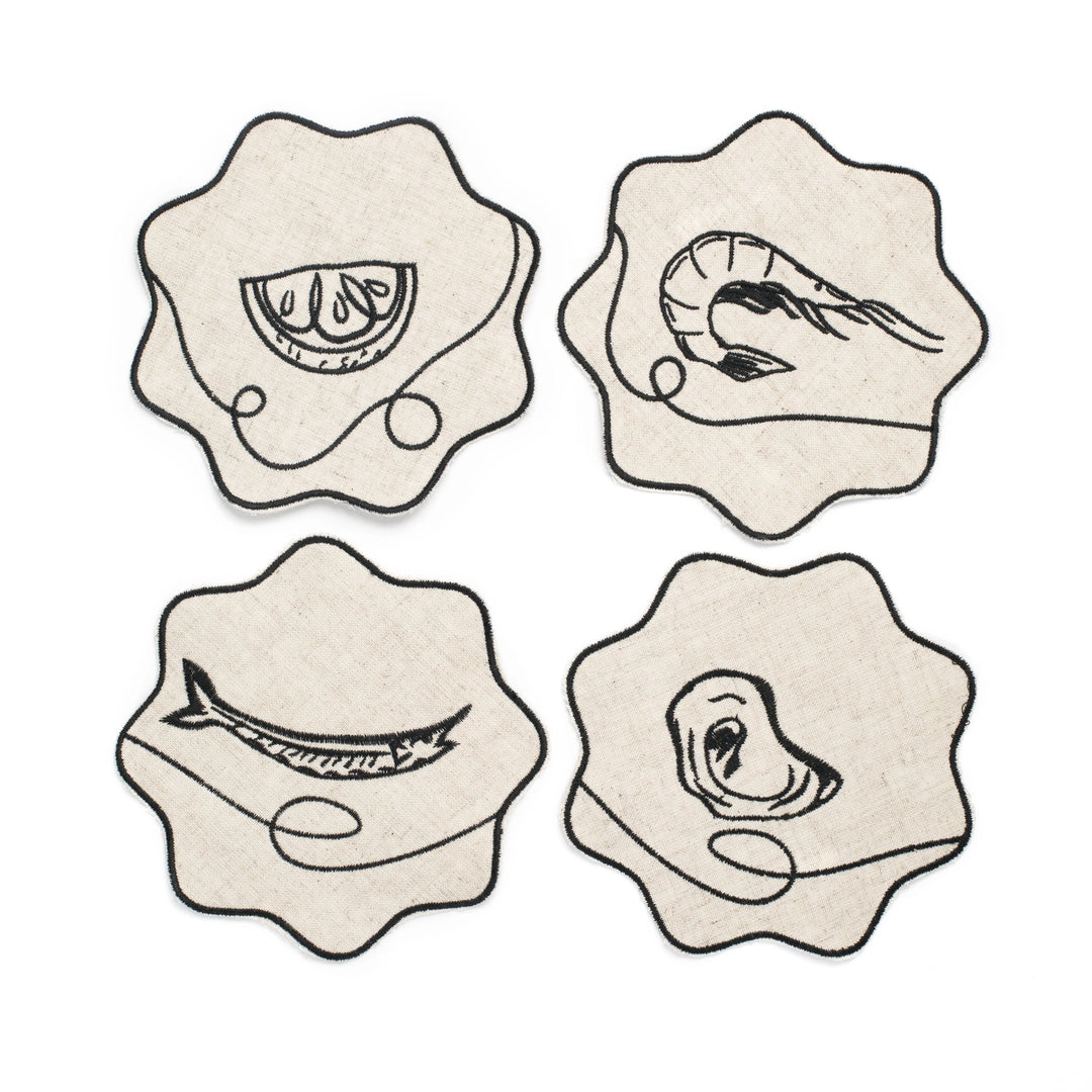 Line Drawing Embroidered Linen Coasters (Set of 4)