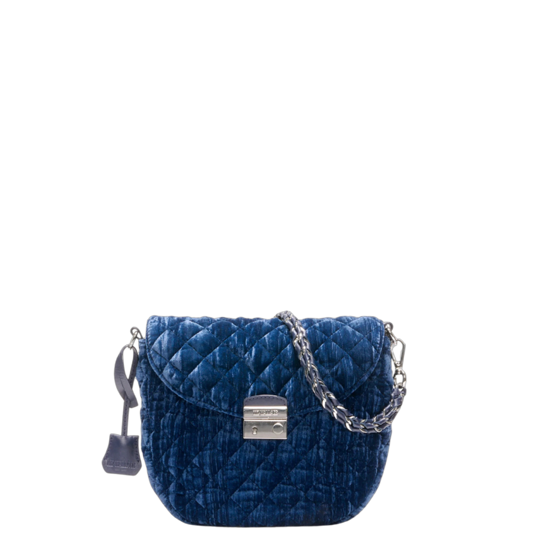 A modern saddle shape with a secure lock and subtle shine. Wear it crossbody or on the shoulder.