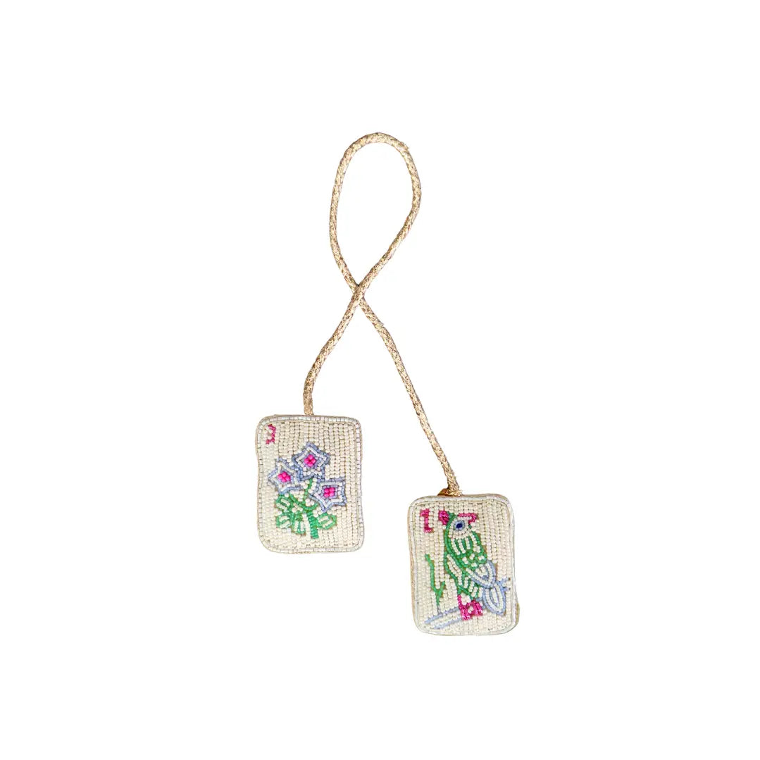 Call it your lucky tile—this double-sided, hand-beaded mahjong charm says “game on” even off the table. Show your personality—and your love for the game—in an elevated, everyday accent. Add to your mahjong bag, your favorite Boat and Tote, or a more formal bag for a fun pop of personality! It makes the perfect gift for your mahjong-loving friends who already have all of the accessories!