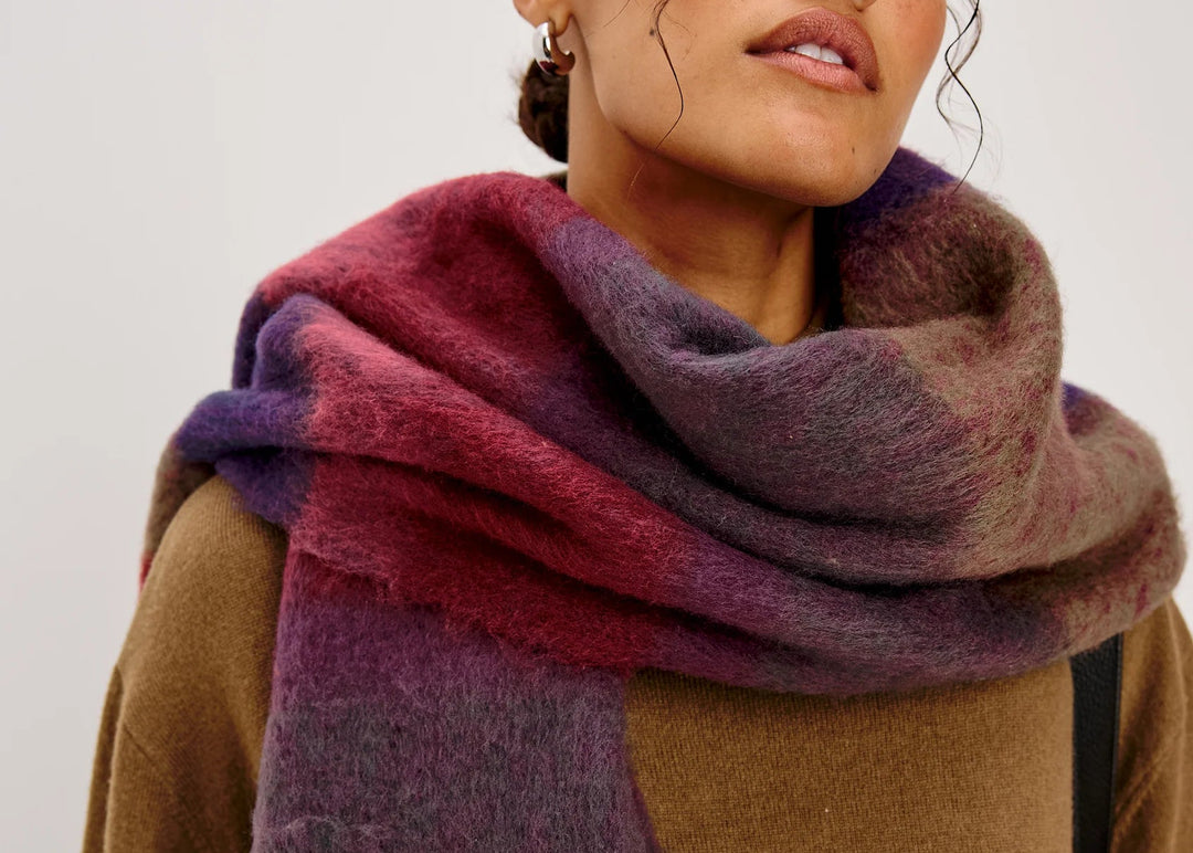 The Oslo scarf is soft with a fluid drape and gentle stretch. Finished with fringe trim, it offers versatile styling for any look.