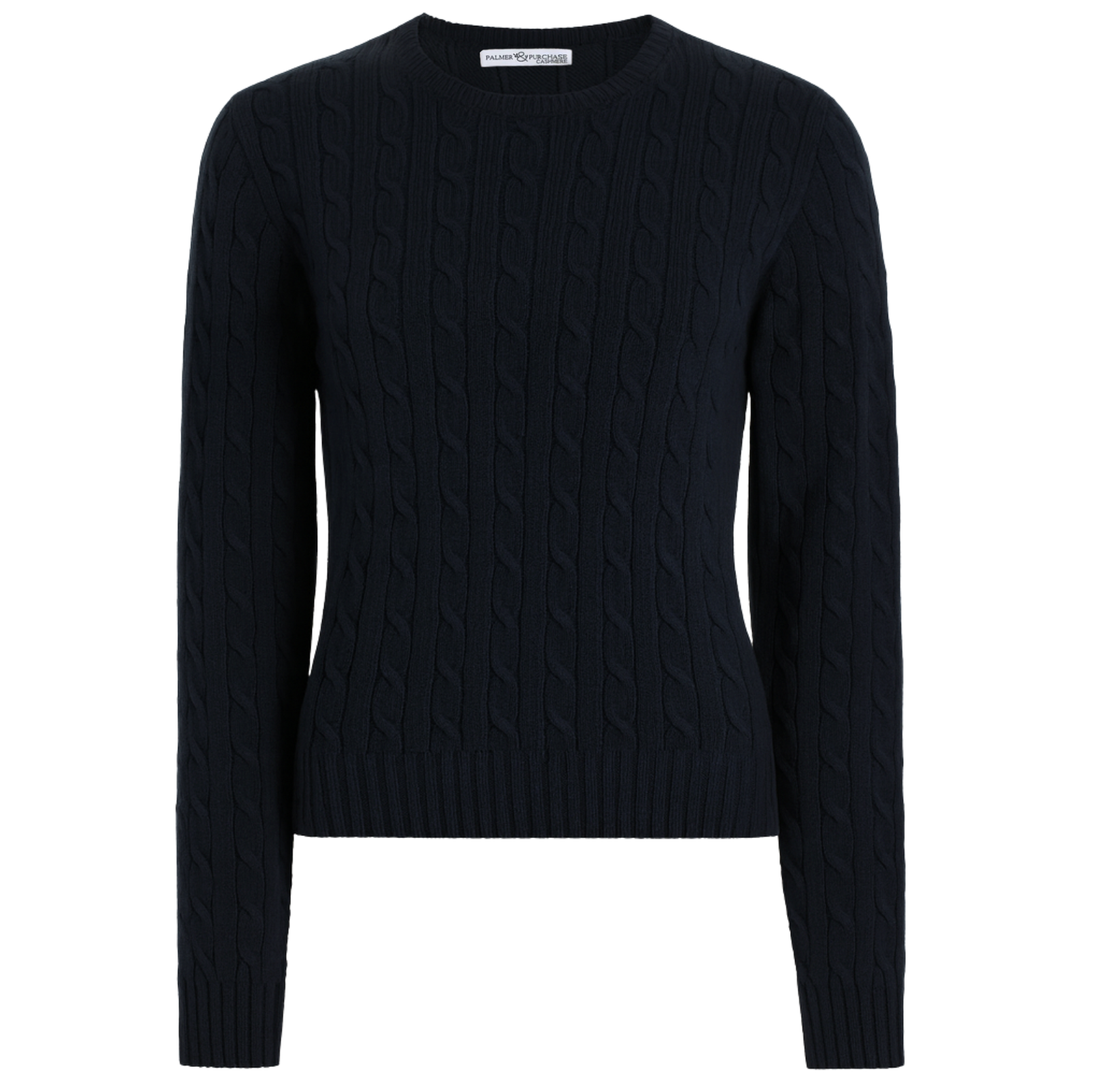 This timeless sweater is cable-knitted in a luxurious cotton cashmere blend. It's designed for a slim fit defined by ribbed trims and has a lightweight feel. Style it with a midi skirt, denim or tailoring.
