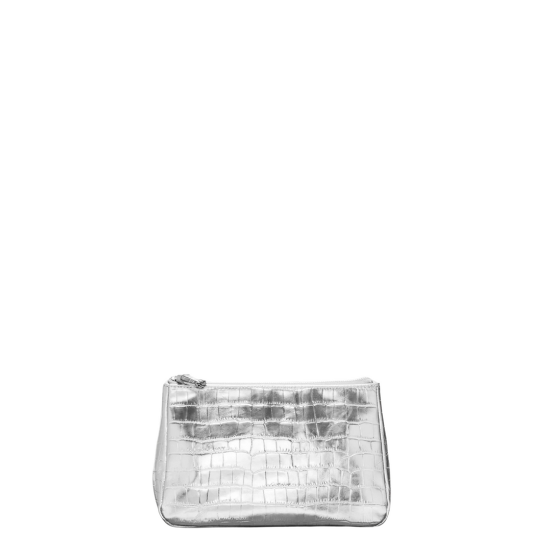 Medium Luna Cosmetic - Silver Croc Effect