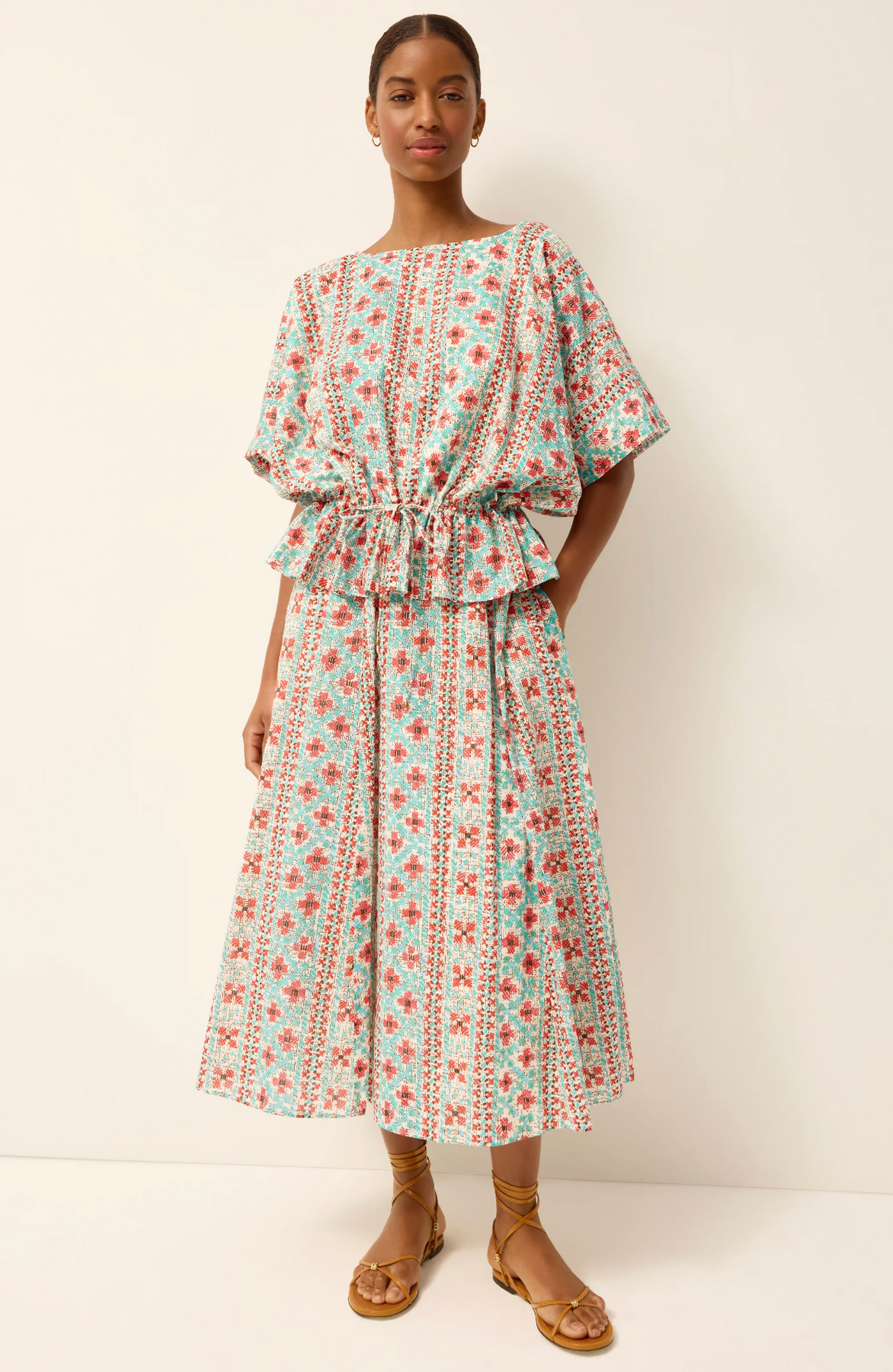 Our Sasha skirt is as fun to wear as it is flattering. A best-selling silhouette, it features easy volume, a comfortable elastic waistband that sits at the natural waist, and pockets for everyday practicality. This season, Sasha gets an artful touch in Azura, a pink-and-blue geometric print with a hand-drawn, tile-inspired feel. Pair it with a simple tank or the matching top for a polished, print-forward look.