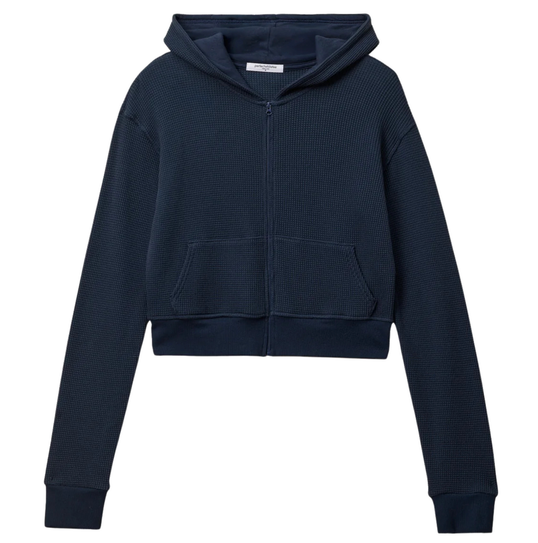 Inez Waffle Zip-Up Hoodie - Navy