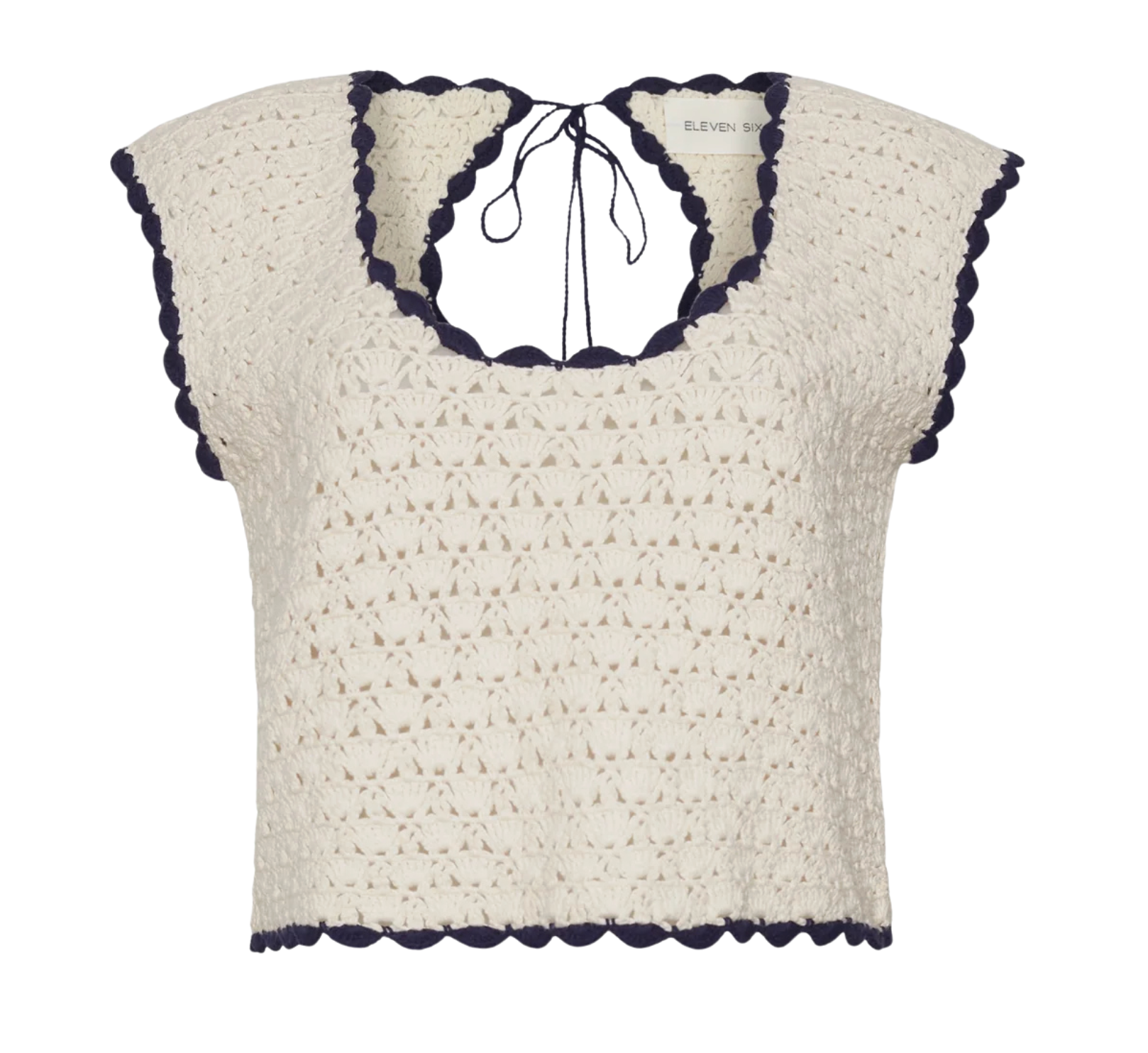 Zaria Crochet Top - Ivory w/ Black Tipping