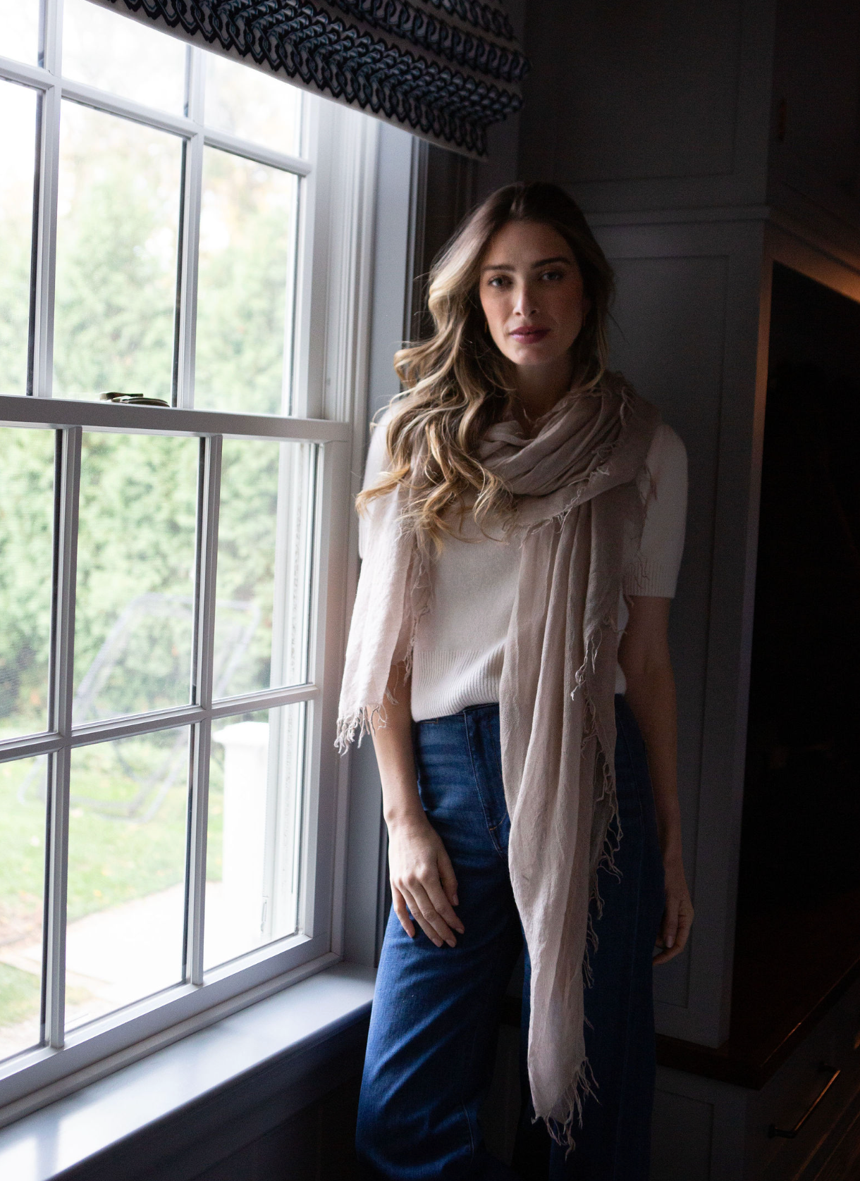 Our cashmere and silk fringed scarf is knitted from a soft blend that results in a delicate and lightweight item that can be worn any time of year.